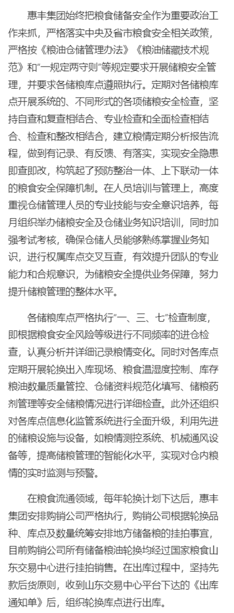 “粮食安全看山东”之济宁:惠丰集团——当好地方储备粮“看护人、守护人”